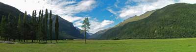 An old hut part of the original Mt Aspiring Station in the East Matukituki. The original Mt Aspiring Station homestead nearby was vacated long ago when the farming family the Aspinalls moved down valley a little to a warmer spot which means they don't have to repeatedly cross the dynamic west branch of the Matukituki river. The main building is now a school camp lodge and been extended in all directions. The garden though is a marvel of old trees and scrubs planted eons ago in this wild environment..