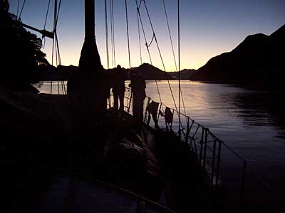 I reckon teenagers like Dougal don't want to go forward into adulthood, they want to go back to innocence, but can't. He told me this back at about the time we were heading to Breaksea and onto Dusky Sound.
